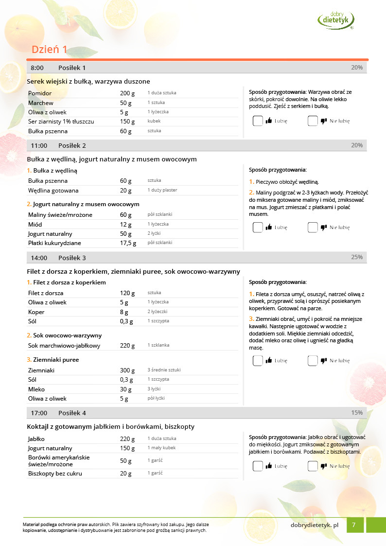 • Liczba posiłków w ciągu dnia: 5
