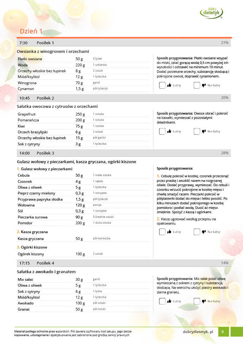• Liczba posiłków w ciągu dnia: 5