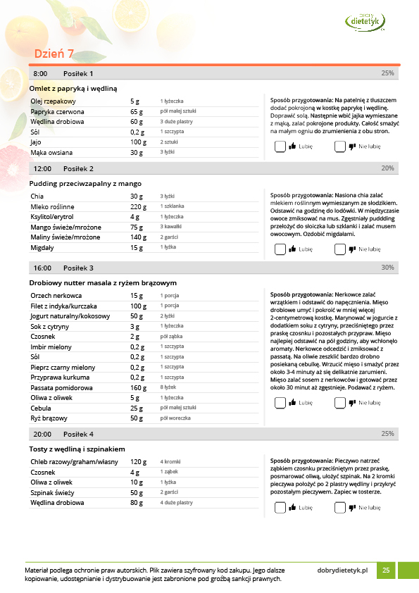Obok szczegółowego planu dietetycznego otrzymasz również praktyczny poradnik korzystania z opracowanego planu dietetycznego.