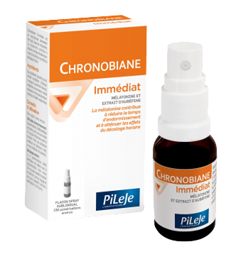 Chronobiane Immédiat to suplement diety w formie sprayu na bazie melatoniny oraz wyciągu z głogu. Melatonina pomaga skrócić czas zasypiania i łagodzi skutki jet lagu. Głóg chroni serce, normuje ciśnienie krwi, a także jest wskazany w stanach nadmiernej pobudliwości, rozdrażnienia czy bezsenności. Podjęzykowa forma sprayu sprawia, że melatonina jest bardziej biodostępna, a jej działanie szybsze. Jednym z podstawowych składników mechanizmu snu jest melatonina, hormon wytwarzany naturalnie przez szyszynkę w ciemności. Wydzielając melatoninę, szyszynka informuje mózg, że jest ciemno i że jest to dobry czas na sen. Synteza melatoniny rozpoczyna się przy braku światła i osiąga maksimum między 2 a 4 rano, a następnie spada w drugiej połowie nocy, aby przygotować się na czuwanie. U niektórych osób ten komunikat nie działa już prawidłowo, powodując trudności w zasypianiu lub opóźniając czas snu. „Resynchronizację” można uzyskać podwyższając poziom melatoniny dzięki 1 lub 2 rozpyleniom Chronobiane Immediate przed snem lub w momencie przebudzenia (1 rozpylenie dostarcza 0,5 mg melatoniny). Rekomendowany do suplementacji w przypadku: • trudności z zaśnięciem, • łagodzenia skutków jet lagu, • budzenia się w nocy, celem ułatwienia ponownego zaśnięcia. Środki ostrożności dotyczące stosowania: może być podawany tylko dzieciom i młodzieży na podstawie porady lekarskiej. Niezalecany dla kobiet w ciąży i / lub karmiących piersią, osób cierpiących na choroby zapalne lub autoimmunologiczne, epileptyków, astmatyków oraz osób z zaburzeniami nastroju, zachowania lub osobowości. W połączeniu z leczeniem farmakologicznym należy zasięgnąć porady lekarza lub farmaceuty.